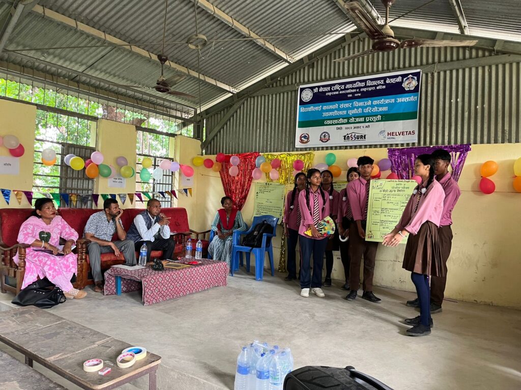 कार्यक्रममा कक्षा १० मा अध्ययनरत ६ समूहका विद्याथर््ीहरुले आ–आफ्नो व्यवसायिक योजना प्रस्तुती गर्नुभएको थियो । प्रस्तुतिमा विद्यार्थीहरुले नमुनाको रुपमा योजना अनुसारको आ–आफ्नो उत्पादन समेत प्रदर्शनीका साथै उपस्थित पाहुनाहरुलाई स्वाद चखाउनु भएको थियो ।